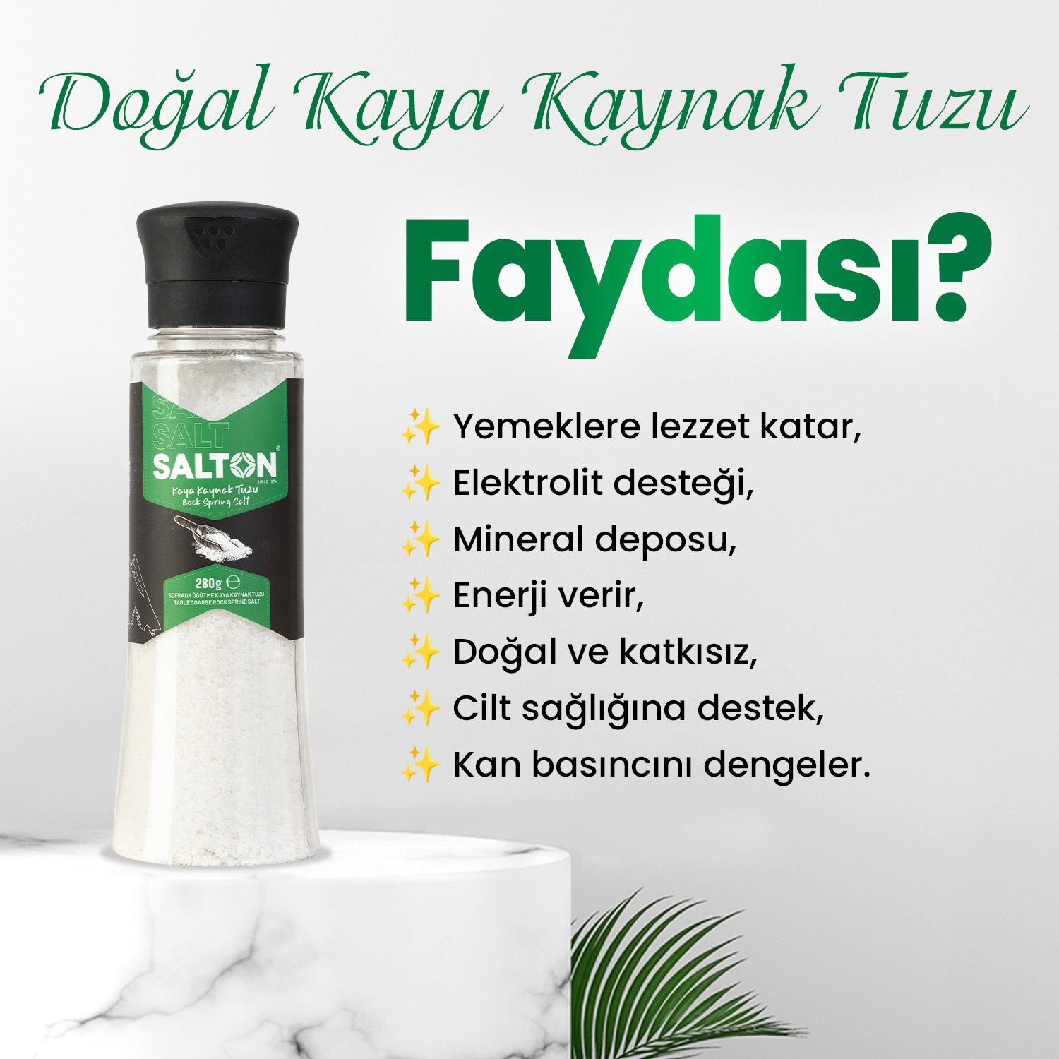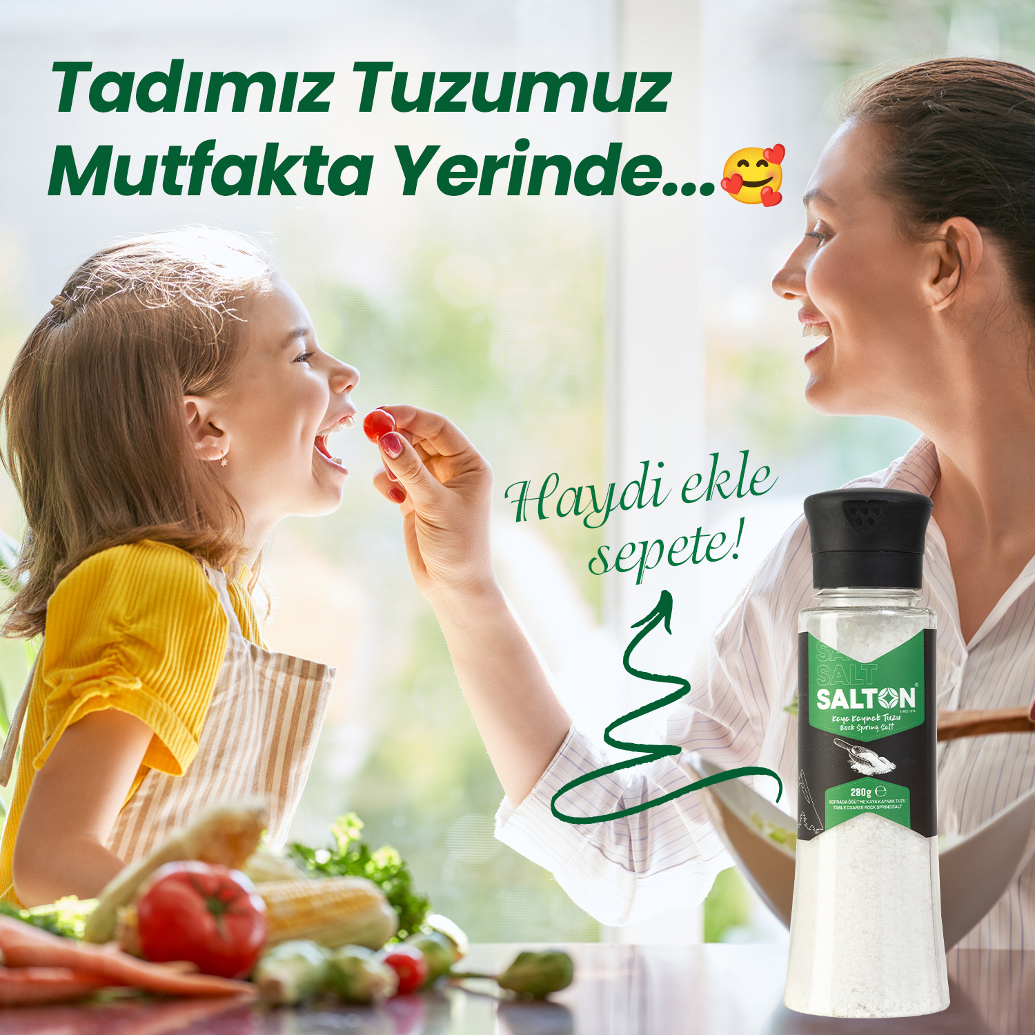 ♦ Salton Kristal Kaya Tuzunun doğal gücünü keşfedin. Yemeklerinizi, Çiçekdağlarından gelen zengin minerallerle besleyin ve her lokmada doğanın saf lezzetini tadın.