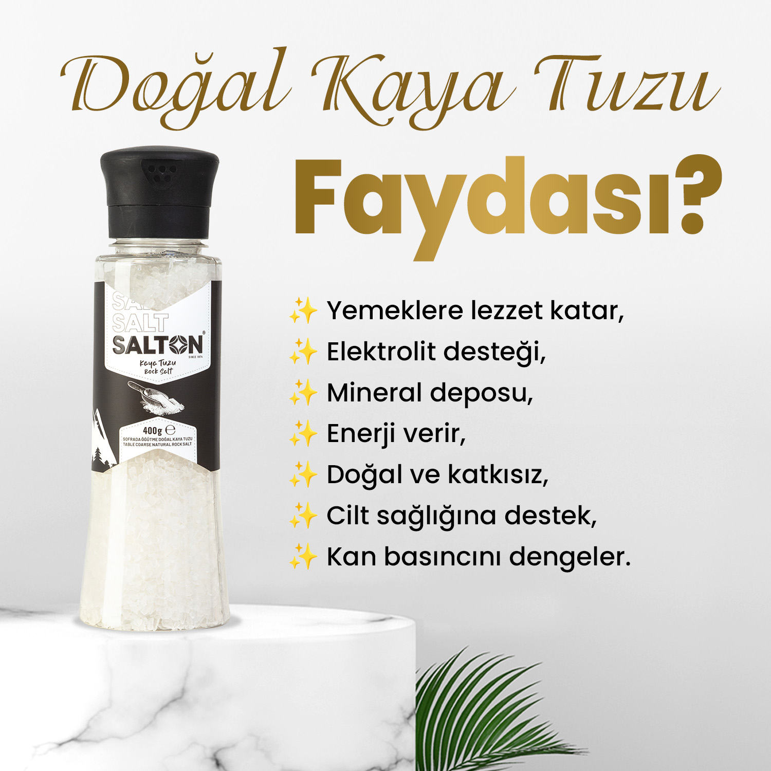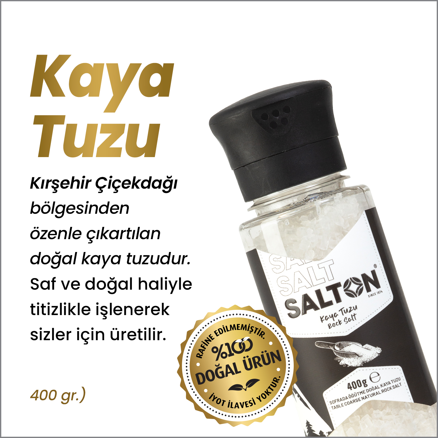 Salton Kristal Kaya Tuzunun doğal gücünü keşfedin. Yemeklerinizi, Çiçekdağlarından gelen zengin minerallerle besleyin ve her lokmada doğanın saf lezzetini tadın.